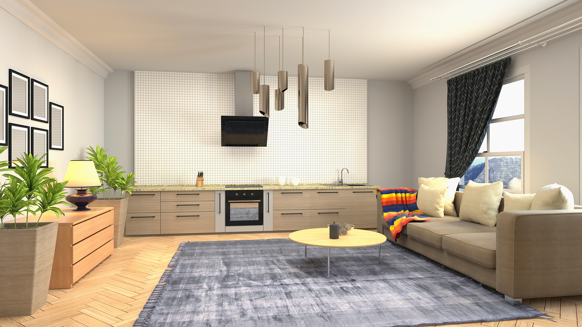 Das Wohnzimmer ist ein Raum, der gleichzeitig bis zu drei Zonen enthalten kann: